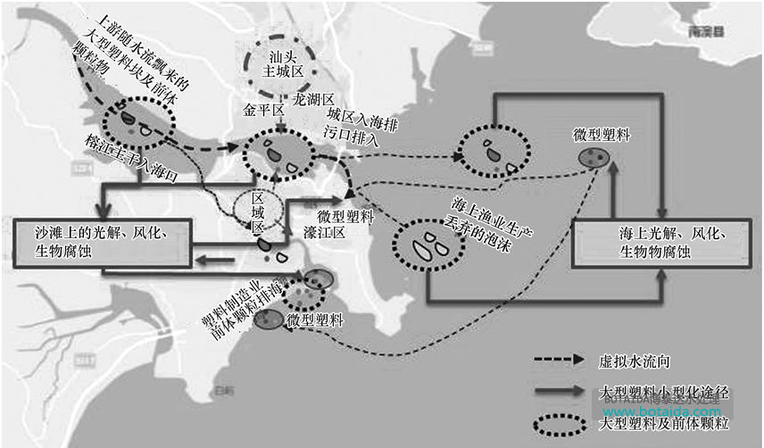 圖2 榕江入海口附近自然沙灘微型塑料產(chǎn)生途徑假設(shè)圖