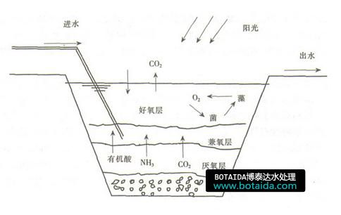 在傳統(tǒng)基礎上改進的高效藻類穩(wěn)定塘比傳統(tǒng)的穩(wěn)定塘有更多的生物,并增加攪拌裝置,促進污水混合;調節(jié)塘內的氧氣和二氧化碳的濃度,及水溫和水質,從而提高有機物、氮和磷的去除率。高效藻類穩(wěn)定塘受光照、溫度、水深和塘內流速的影響大。