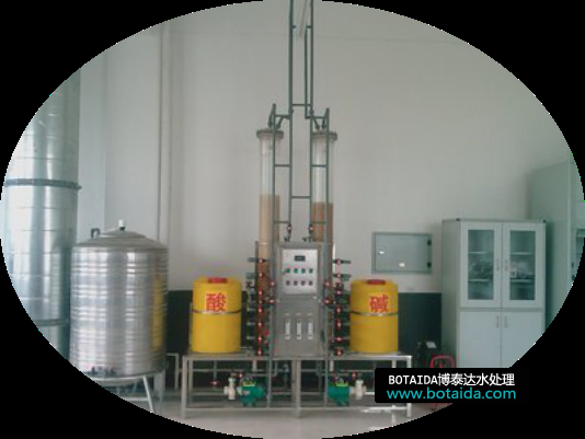 混床是指水依次通過裝有氫型陽離子交換樹脂的陽床和裝有氫氧型陰子交換樹脂的陰床的系統(tǒng)。氫型陽交換床用于除去水中的陽離子;氫氧型陰交換床用于除去水中的陰離子。通過復(fù)床可將水中的種礦物鹽基本除去。為了獲取較好的除鹽效果,陽床內(nèi)裝載強(qiáng)酸陽離子交換樹脂,陰床一般內(nèi)裝載強(qiáng)堿陰離子交換樹脂。混床也分為體內(nèi)同步再生式混床和體外再生式混床。