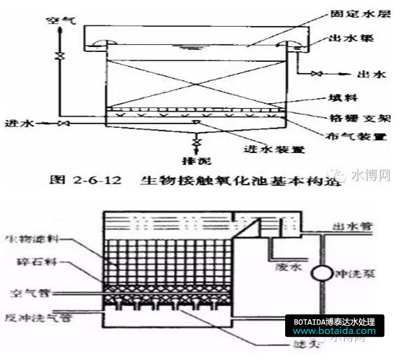 接觸生物法是一種兼有活性污泥法和生物膜法特點的一種新的污水生化處理方法。這種方法主要設備是生物接觸氧化濾池。在不透氣的曝氣池中裝有焦炭、礫石、塑料蜂窩等填料,填料被水侵沒,用鼓風機在填料底部曝氣充氧。