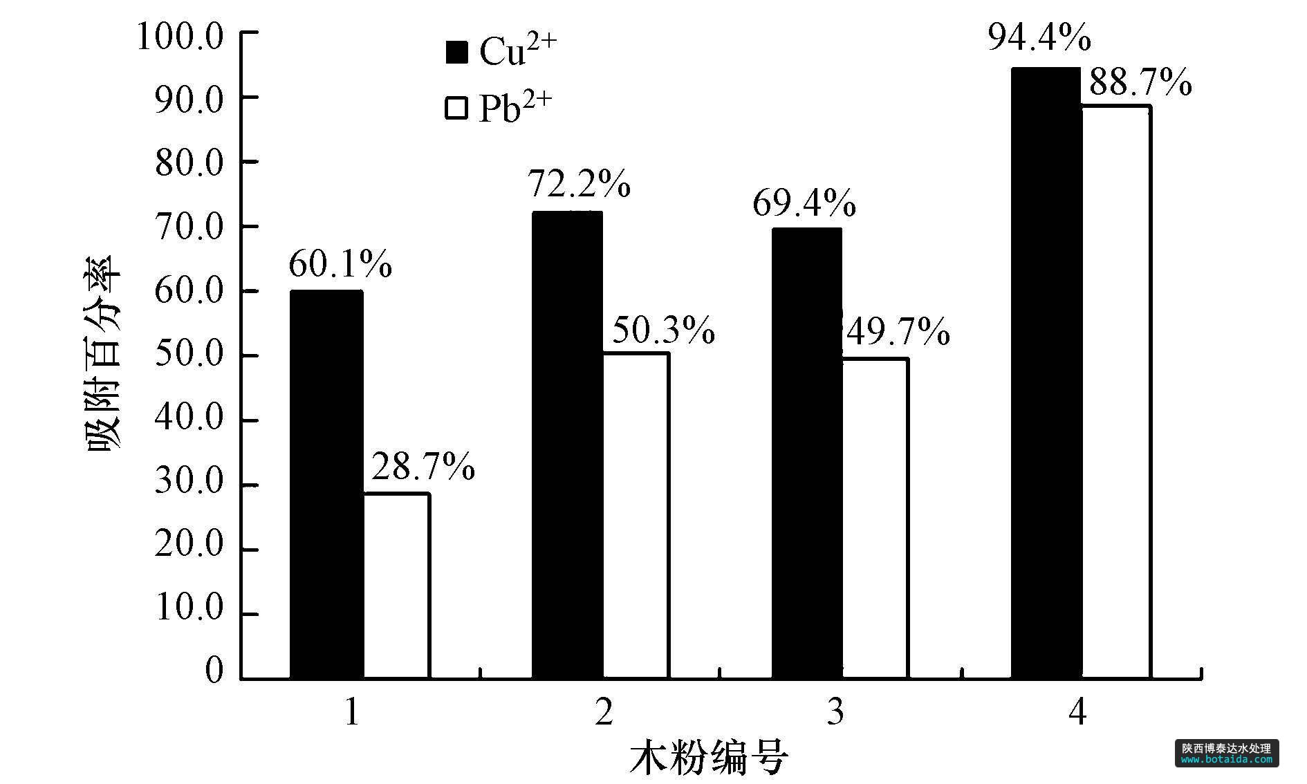 3.2 不同種類(lèi)木粉對(duì)吸附百分率的影響