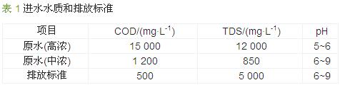 該工程設(shè)計(jì)處理能力為320 t/d,其中生產(chǎn)廢水約為80 t/d,車間沖洗水、生活污水 約為240 t/d,其水質(zhì)如表 1所示。