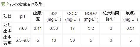 該工程竣工后進(jìn)入調(diào)試階段,先后經(jīng)過單機(jī)調(diào)試、單元調(diào)試、分段調(diào)試(掛膜)及整體調(diào)試等過程,20多天后出水水質(zhì)達(dá)到設(shè)計(jì)要求,投入正式運(yùn)行。自工程正式運(yùn)行以來,處理出水水質(zhì)一直穩(wěn)定達(dá)標(biāo),可滿足《工業(yè)循環(huán)冷卻水處理設(shè)計(jì)規(guī)范》(GB 50050—2007)中規(guī)定的再生水作為間冷開式系統(tǒng)補(bǔ)充水的水質(zhì)指標(biāo)要求及《城市污水再生利用 城市雜用水水質(zhì)》(GB/T 18920—2002)中城市綠化、道路清掃和沖廁的要求,主要水質(zhì)指標(biāo)見表 2。