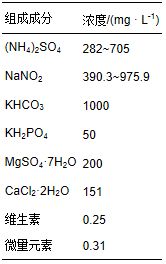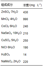 CANON工藝的啟動階段采用人工模擬高氨氮廢水.啟動完成后,利用某石化公司石油裂化催化劑生產(chǎn)廢水對微生物進行馴化,廢水日產(chǎn)量約為15.6×103 m3.模擬高氨氮廢水的水質(zhì)如表 1所示(于英翠等,2012),微量元素成分見表 2.