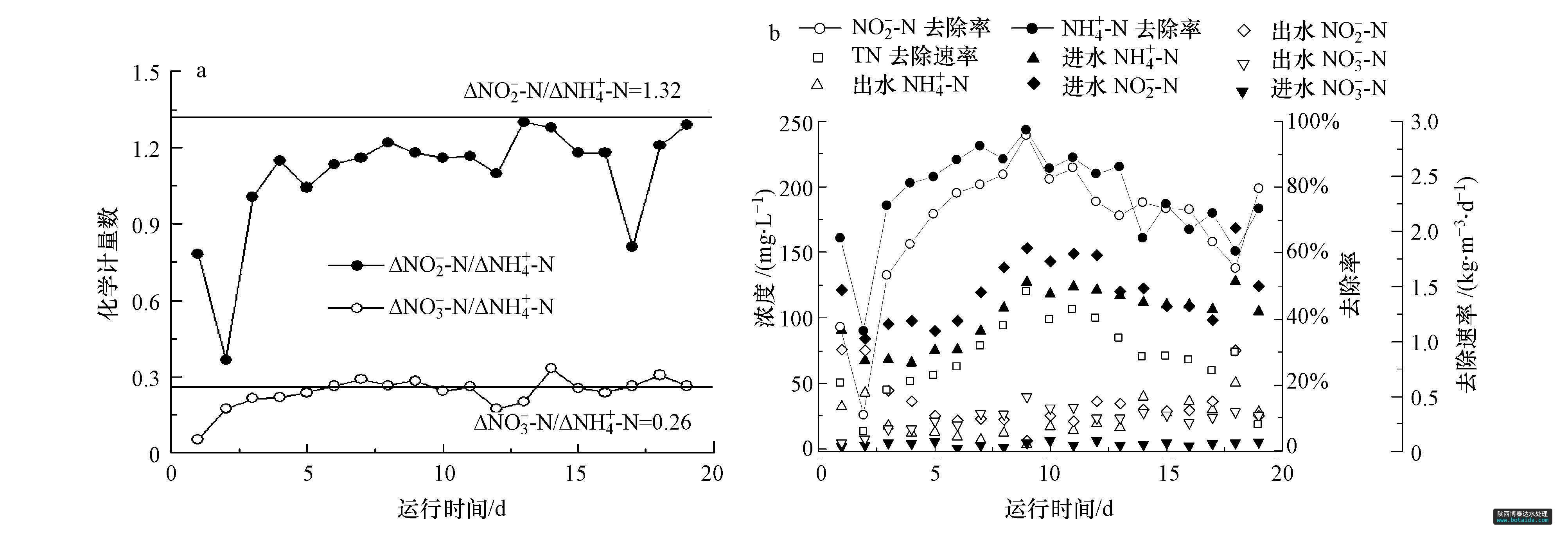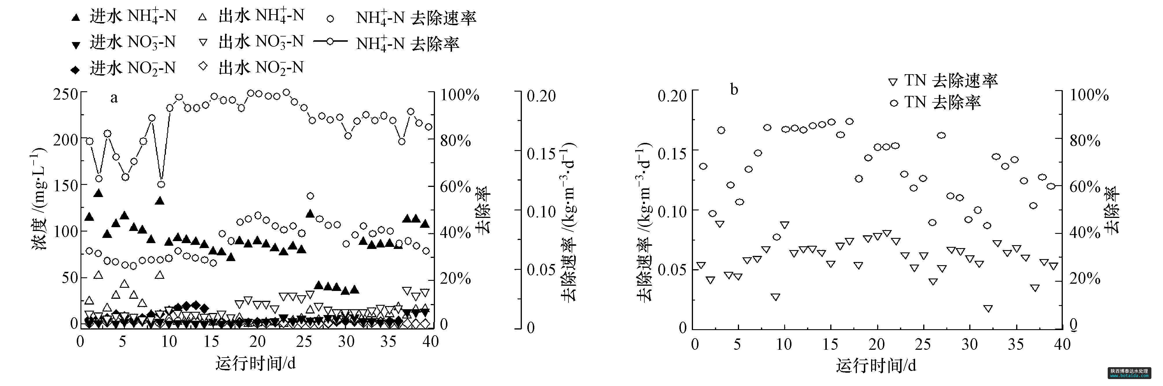 CANON工藝系統(tǒng)中的微生物馴化成功后,考察工藝對于有機物及氮素的去除效果.