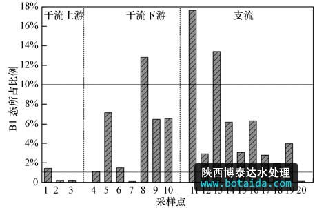 圖4 表層沉積物中B1態(tài)汞占總量比例
