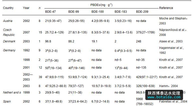 3)污水和污泥是環(huán)境中PBDEs的一個(gè)重要來(lái)源,但是對(duì)環(huán)境的影響有限,特別是污泥農(nóng)用.