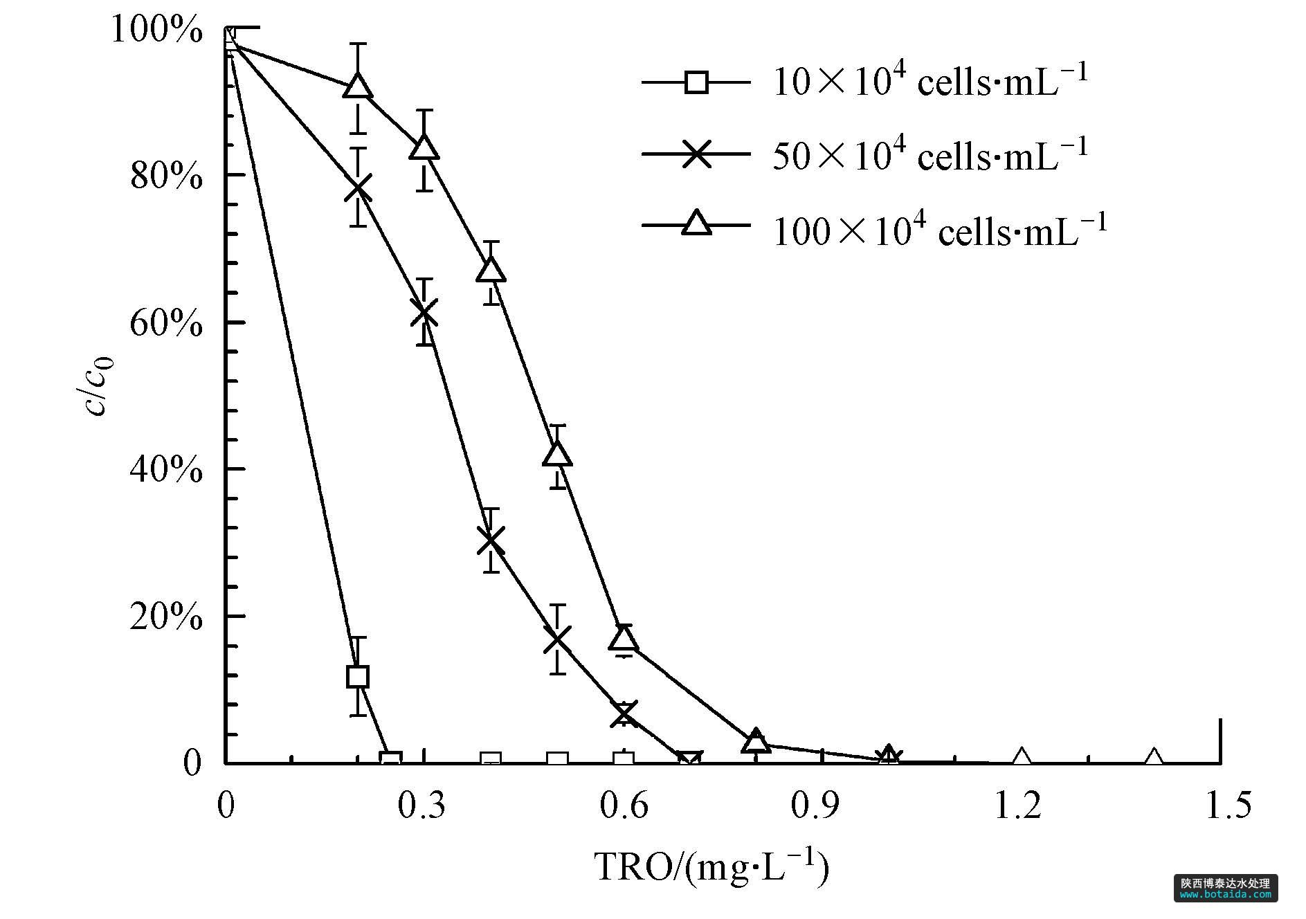 實(shí)驗(yàn)用水是由純水機(jī)制備的去離子水,用于調(diào)節(jié)系統(tǒng)參數(shù)制備所需濃度的TRO溶液和配制藻液.