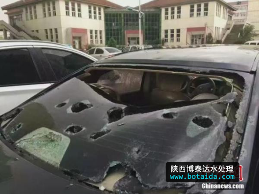 2016年6月13日,雞蛋大的冰雹襲擊山西長(zhǎng)治,多輛汽車(chē)玻璃被砸碎。  中新網(wǎng) 圖