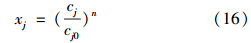 式中,x′j 為水質(zhì)指標(biāo)j的規(guī)范值.