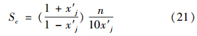 若n固定,將Sc對x′j求導(dǎo),并令S′c=0,得x′j=-1≈0.4142時,Sc有極小值0.5828n.由于變換式(2)~(7)中,對多數(shù)指標(biāo)只取n=±2、±1、±0.5.而公式(10)和式(11)中,x′j 取值范圍為x′j∈[0,0.5](對水體),x′j∈[0,0.4](對空氣).當(dāng)n為上述值時,x′j 分別取為如表 4所示值時,由式(21)計算得靈敏度Sc值如表 4所示.