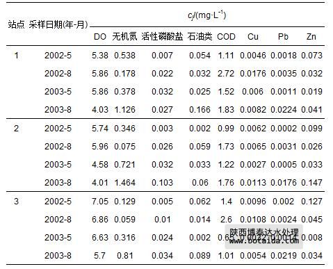 表 7 珠江口2002—2003年3個站點(diǎn)水質(zhì)指標(biāo)監(jiān)測數(shù)據(jù)cj