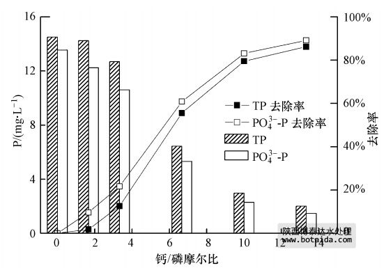 圖 7 鈣磷摩爾比對(duì)除磷效果的影響