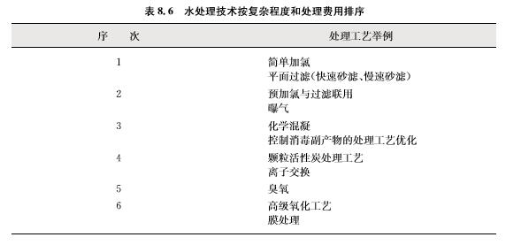 ?        不同水處理工藝按其復(fù)雜程度和處理費(fèi)用的定性排序如表8.6所示,次序越高,工藝或 運(yùn)營(yíng)越復(fù)雜。