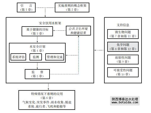 各種化學(xué)污染物的詳細(xì)說明在本準(zhǔn)則第 12章列出,因為這些污染物已經(jīng)制訂了準(zhǔn)則 值,情況說明書中包括化學(xué)物質(zhì)的簡要毒理 學(xué)概述,制訂準(zhǔn)則的依據(jù),水處理性能和分析 檢測限。
