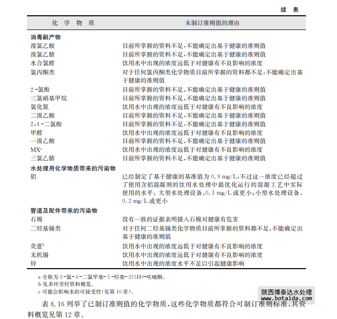 表8.15列舉了尚未制訂準則值的化學物質(zhì),并在表中說明了理由,其資料概覽見第12章。