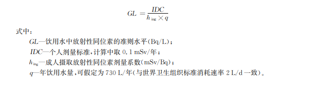 飲用水中放射性同位素的準(zhǔn)則水平由下式計(jì)算確定: