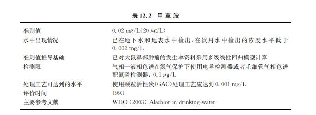 甲草胺(化學(xué)文摘編號(hào)CASNo.15972 60 8)是一種苗前和苗期使用的除草劑,主要 用于控制玉米及其他多種農(nóng)作物田地中一年生的雜草和多種闊葉雜草。甲草胺主要通過揮 發(fā)、光降解和生物降解作用從土壤中消失。在土壤中可發(fā)現(xiàn)多種甲草胺的降解產(chǎn)物。歐盟 和加拿大采取的最新監(jiān)管制度中,盡管可以在使用前告知大眾需要使用甲草胺,但其依然被 列為禁止使用的農(nóng)藥(見表12.2)。