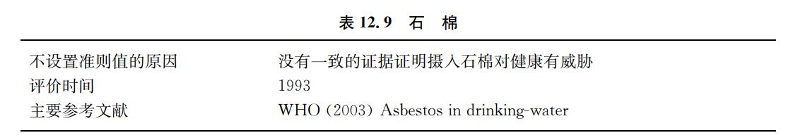 水中的石棉來自含石棉的材料和礦石在水中的分解,也來自工業(yè)排放物以及大氣污染 和供水系統(tǒng)中的石棉 水泥管道。石棉纖維從石棉 水泥管剝落可對水的供應造成威脅。有 限的資料顯示,在淋浴或空氣潮濕時,從自來水釋放到大氣的石棉暴露量可以忽略不計(見 表12.9)。