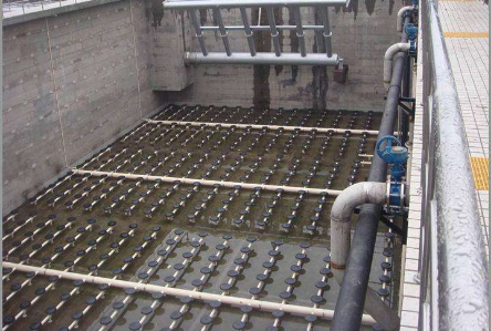 鼓風(fēng)曝氣設(shè)備:是使用具有一定風(fēng)量和壓力的曝氣風(fēng)機(jī)利用連接輸送管道,將空氣通過(guò)擴(kuò)散曝氣器強(qiáng)制加入液體中,是池內(nèi)液體與空氣充分接觸。