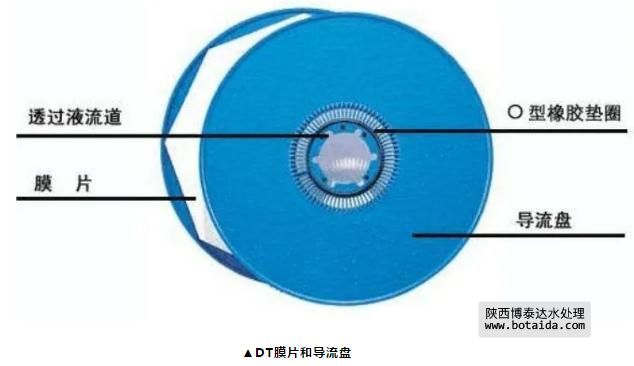 在該工藝中不需要實現(xiàn)污染物質的最終去除,僅為分離作用,因此,運行能耗大大降低;DT組件內部任何單個部件均允許單獨更換。過濾部分由多個過濾膜片及導流盤裝配而成,當過濾膜片需更換時可進行單個更換,對于過濾性能好的膜片仍可繼續(xù)使用,這最大程序減少了換膜成本。